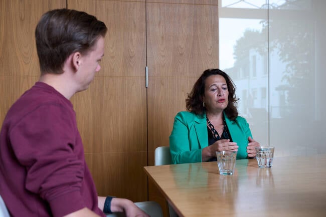Westra: ‘Toen de vacature voor voorzitter van het Kinderrechtencollectief online kwam, vroeg ik of daar een leeftijdsgrens aan zat. Ik was toen 15 en al een tijdje actief in de kinderrechten. Ze vonden het wel een beetje spannend om daar een kind voor in te zetten. Toen is de functie van vicevoorzitter in het leven geroepen.’